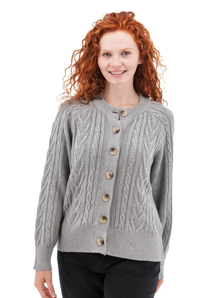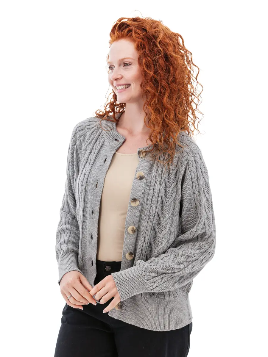 - Cable knit raglan sleeve cardigan