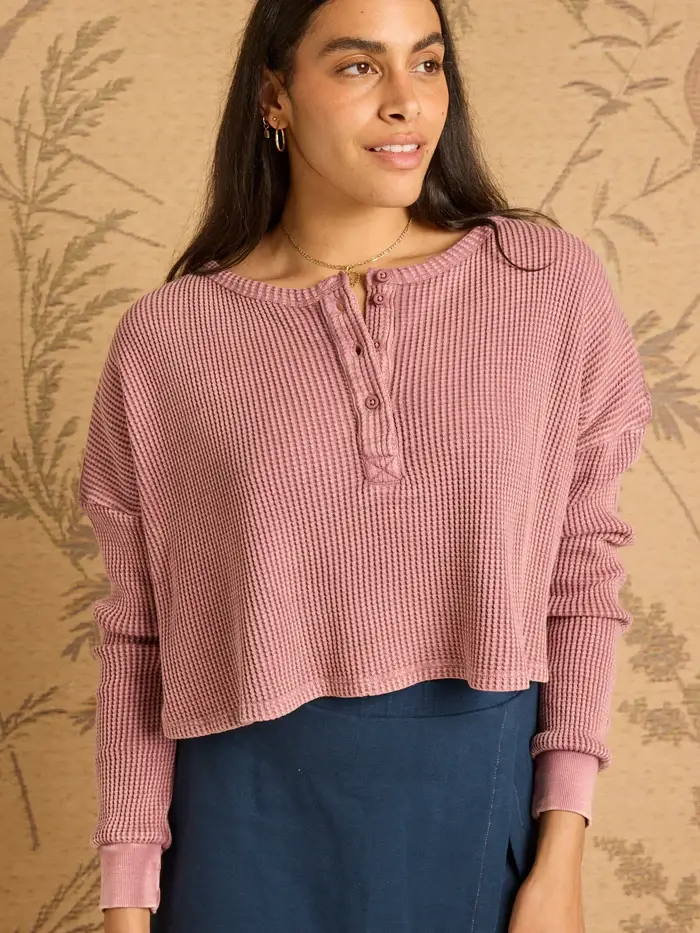 This 100% Organic Cotton Gauze top has a beautiful vintage washed quality. It falls just at the waist/hips and has a nice long sleeve.