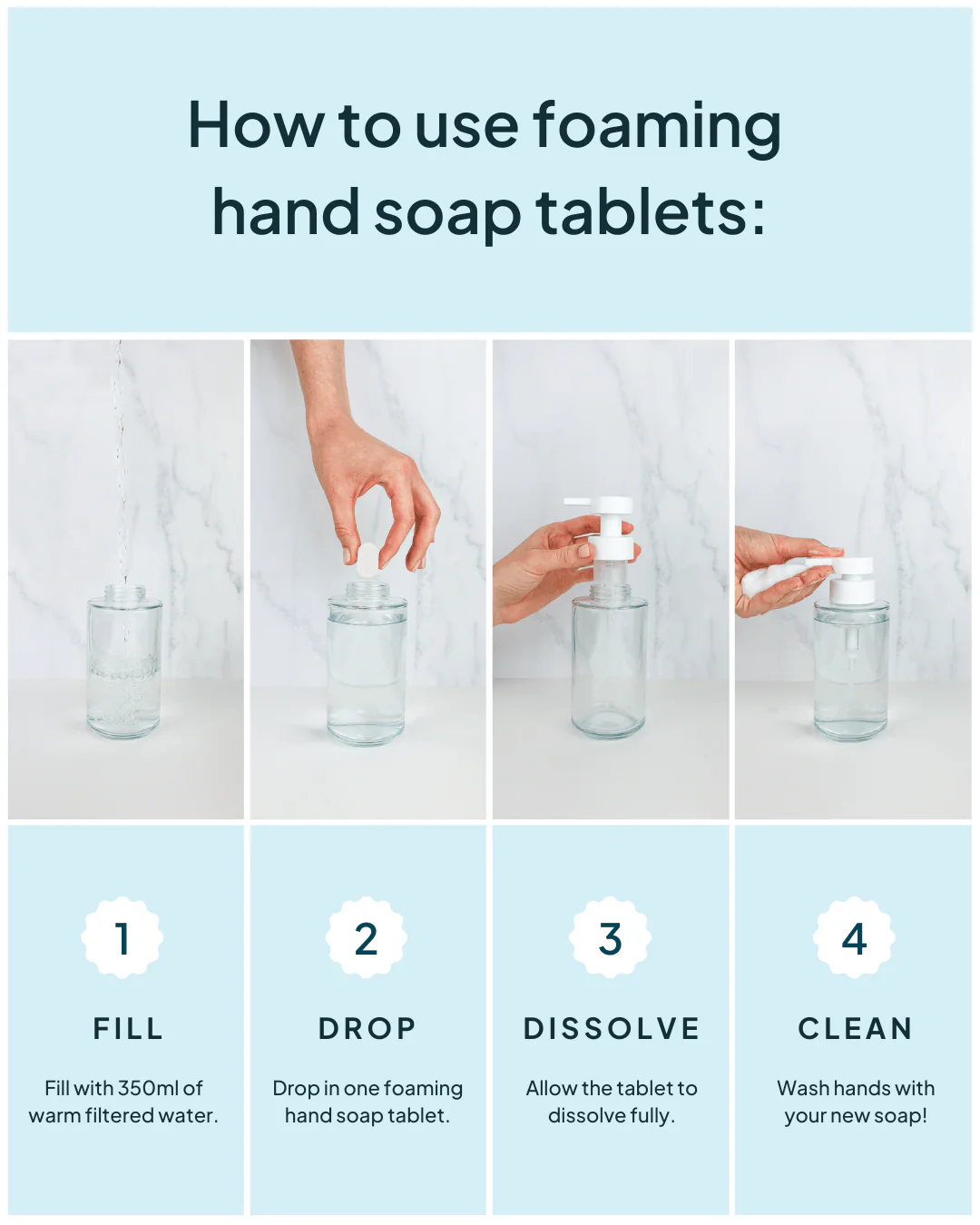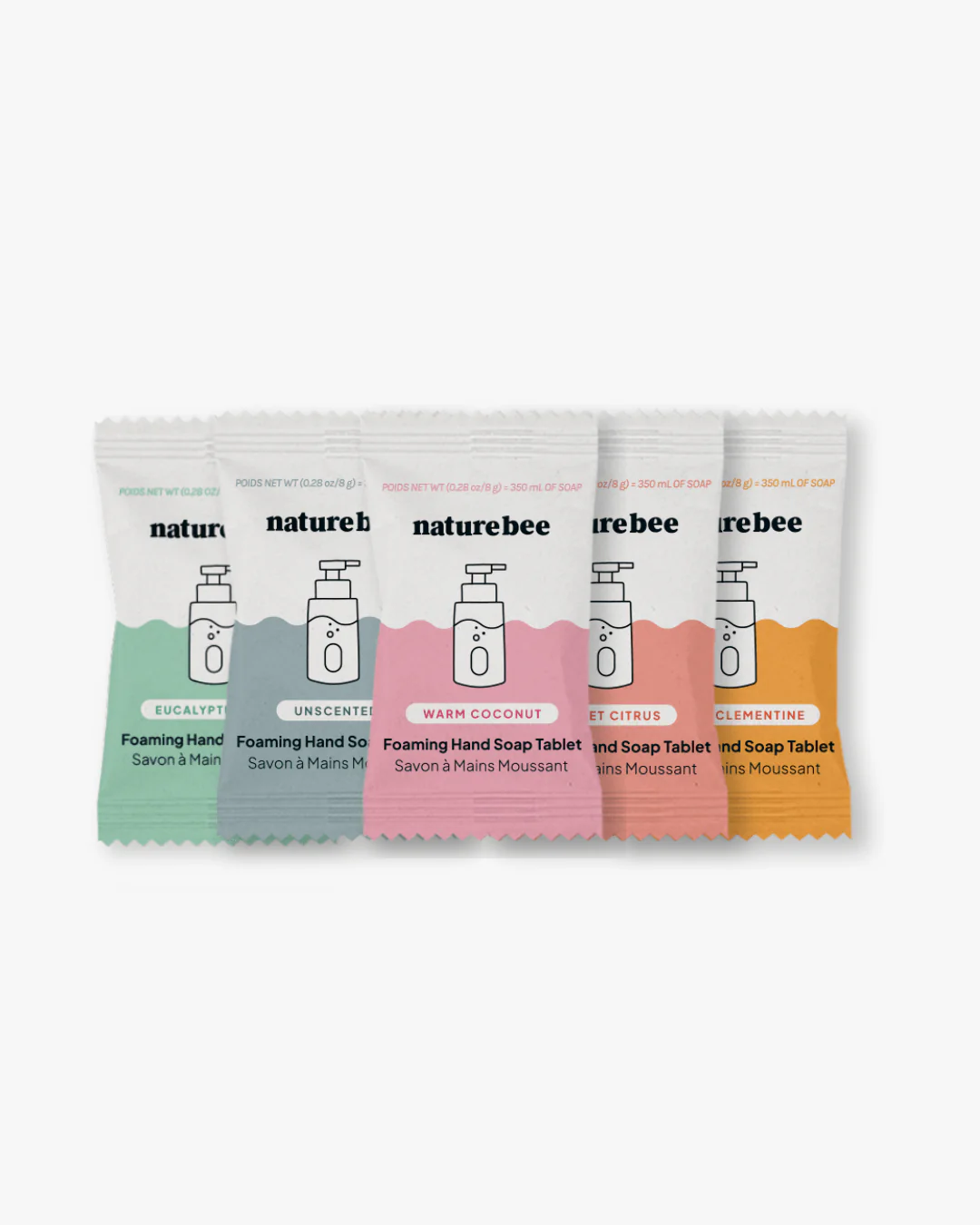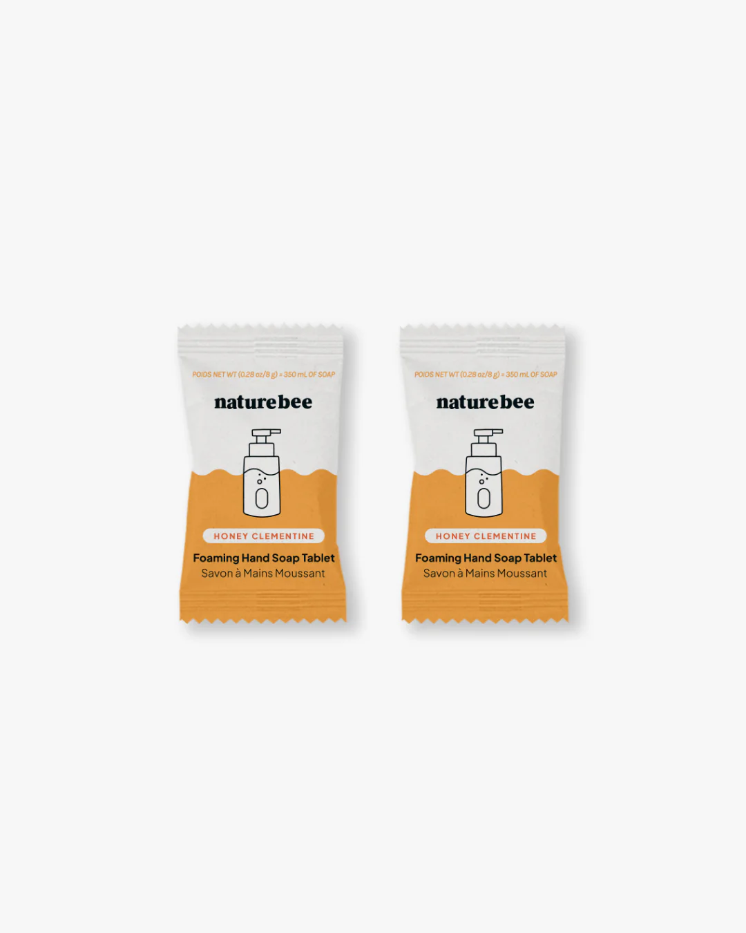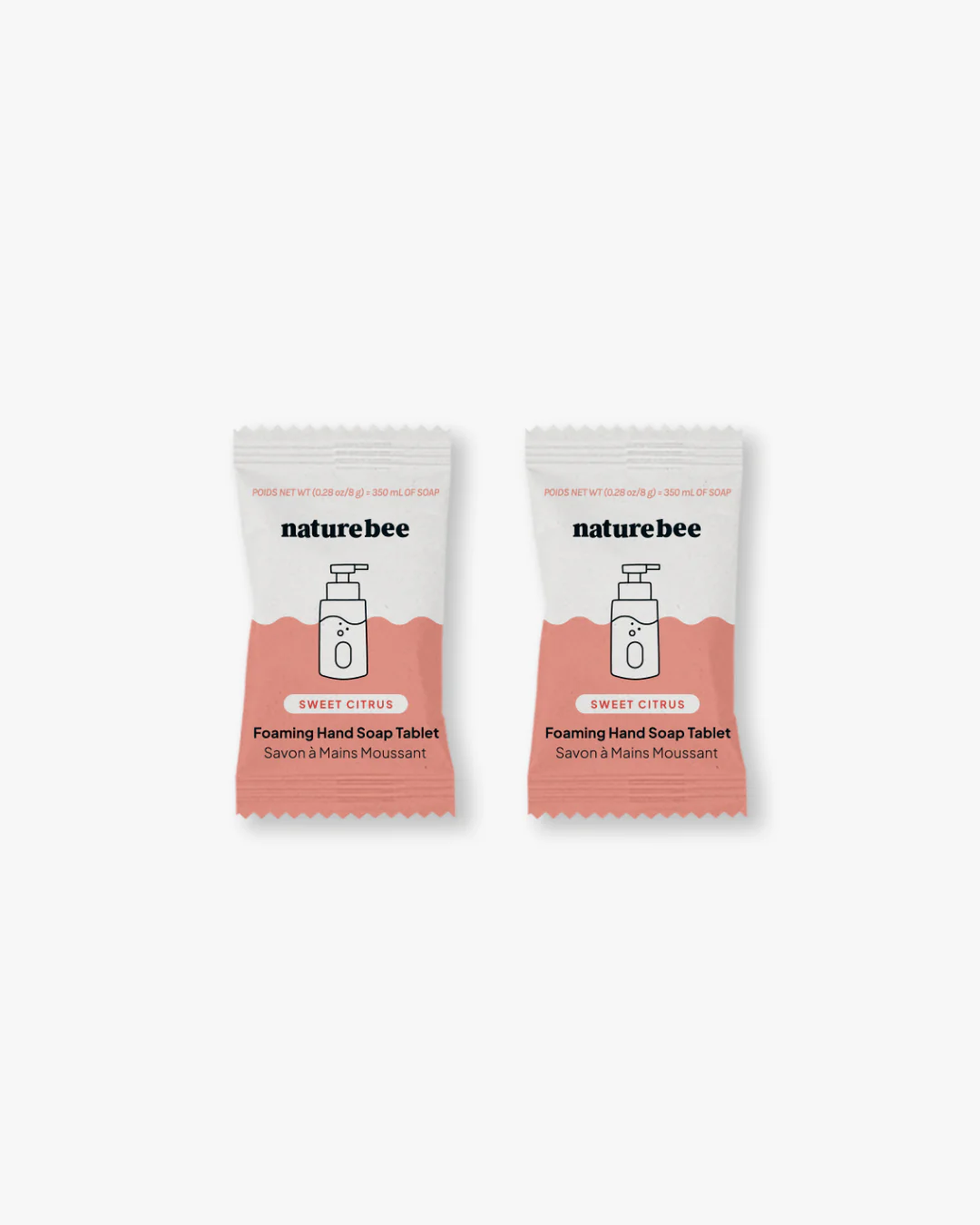 Nature Bees foaming hand soap tablets are a compact, concentrated refill solution that dissolves in water to create a gentle, eco-friendly soap, reducing waste and clutter! Take your pick of 4 or 12 of your favourite hand soap tablet scent!