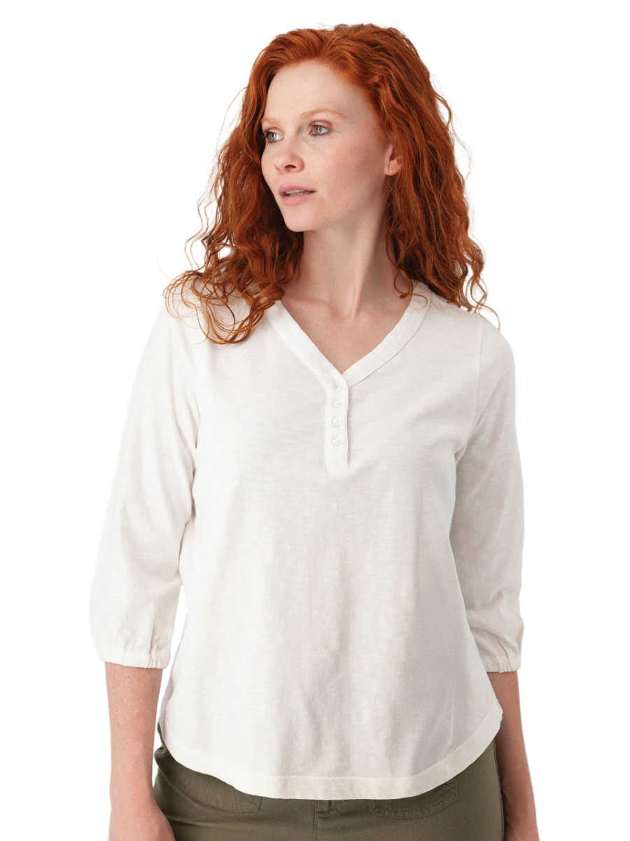 The Este Organic Cotton V-Neck Henley is dependable but designed to feel more special than the average tee. One way this stands above the rest is the sustainable slub knit fabric, crafted from organic cotton. It has an incredible and unique texture throughout, one that also gifts a naturally heathered appearance. This fabric breathes well, sits comfortably against the skin, and is easy to care for. We love the modern length, ending (on average) at the hip. It’s the perfect length to pair with mid-rise jeans and still look flattering when not tucked in. The slight shirttail hem adds to the flattering shape and the V-neck henley gives it that flattering flare.